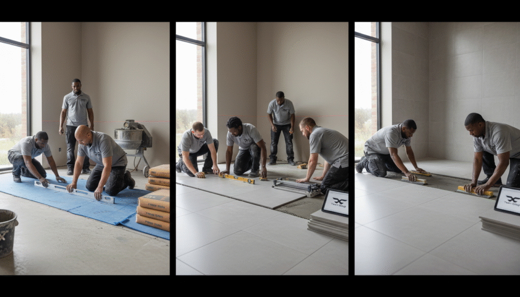 Aplicamos cerâmicas e porcelanatos com precisão para um acabamento elegante e durável.
